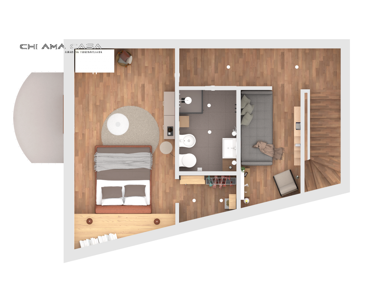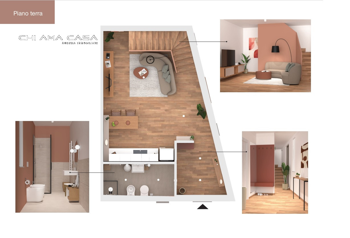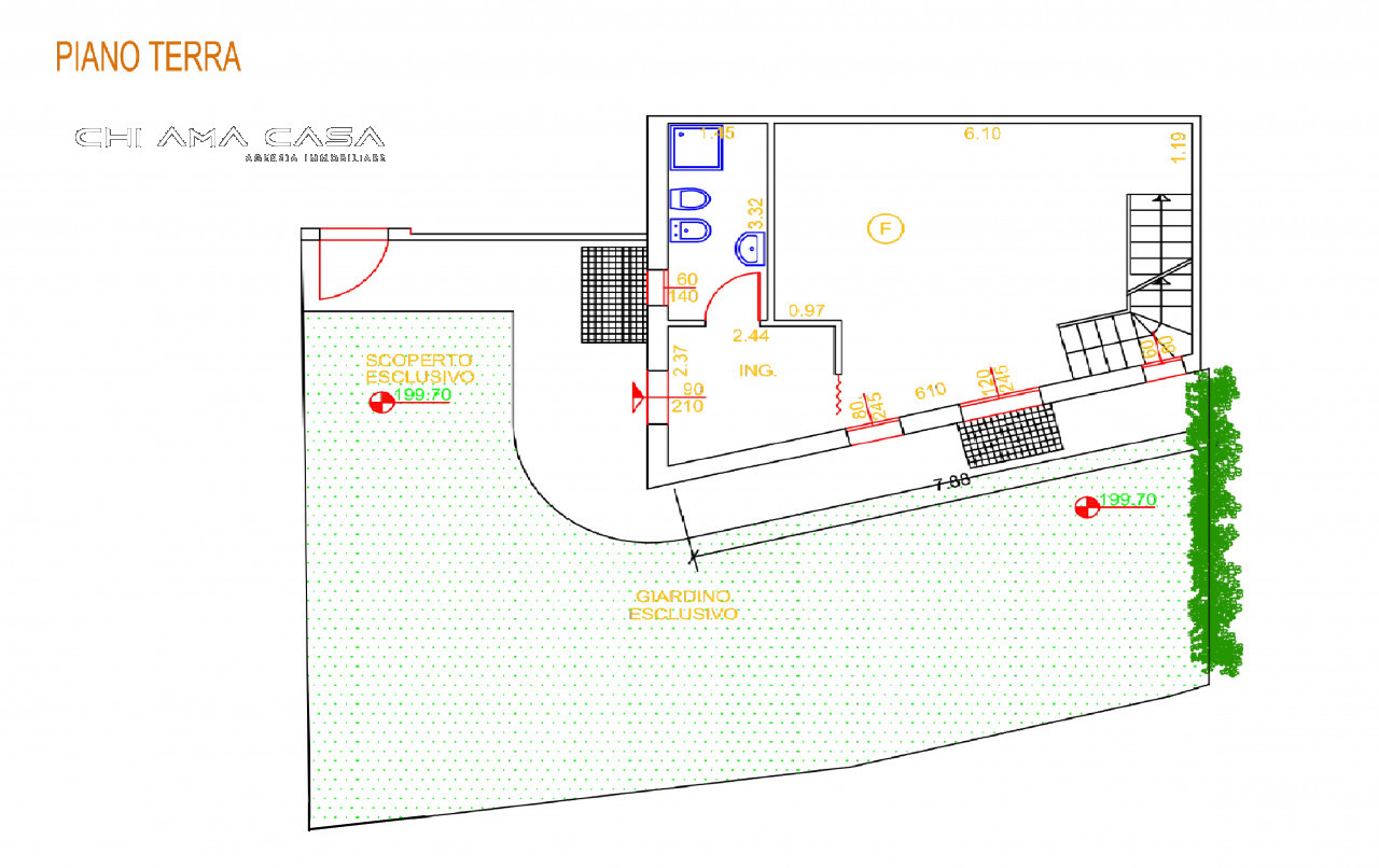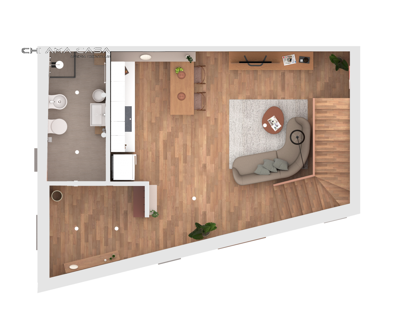 Piano Terra di circa 43 mq, composto da: ingresso indipendente dal giardino, soggiorno con cucina a vista e bagno;