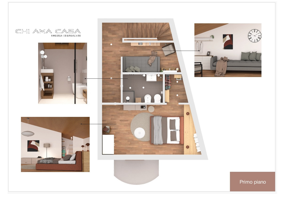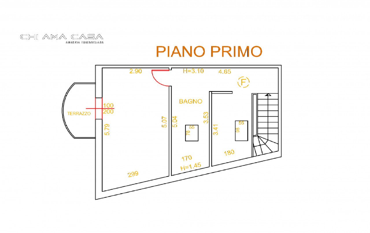 Primo Piano di circa 43 mq, composto da: camera matrimoniale, camera singola, balcone, bagno;