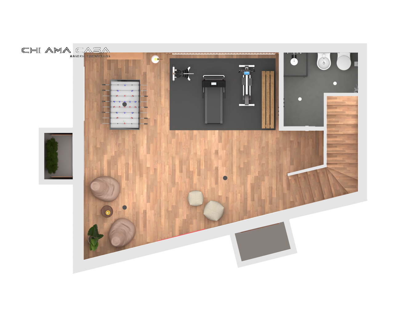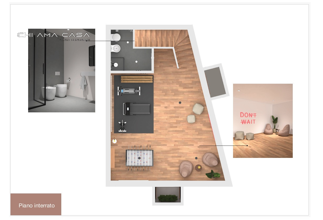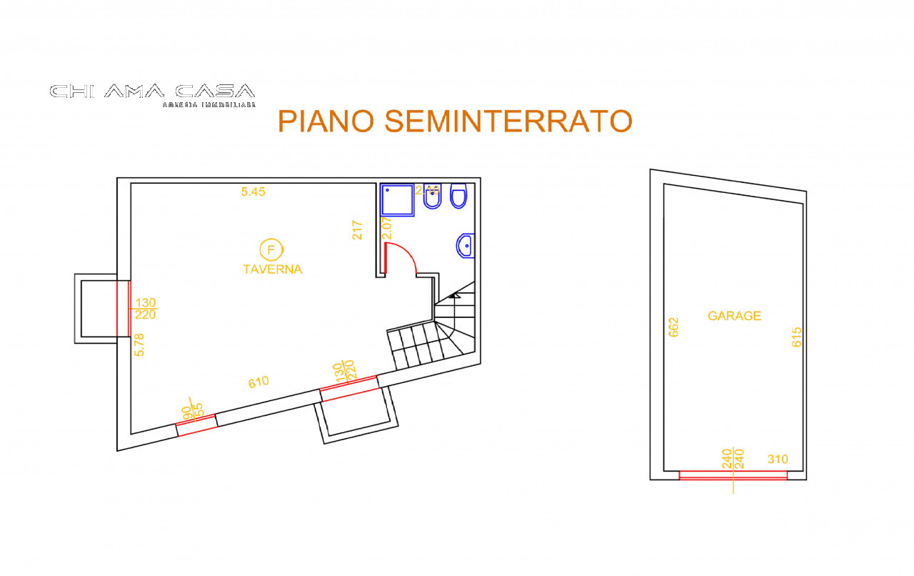 Piano Seminterrato di circa 46 mq, composta da: ampia taverna con attacchi e scarichi più lavanderia-bagno;